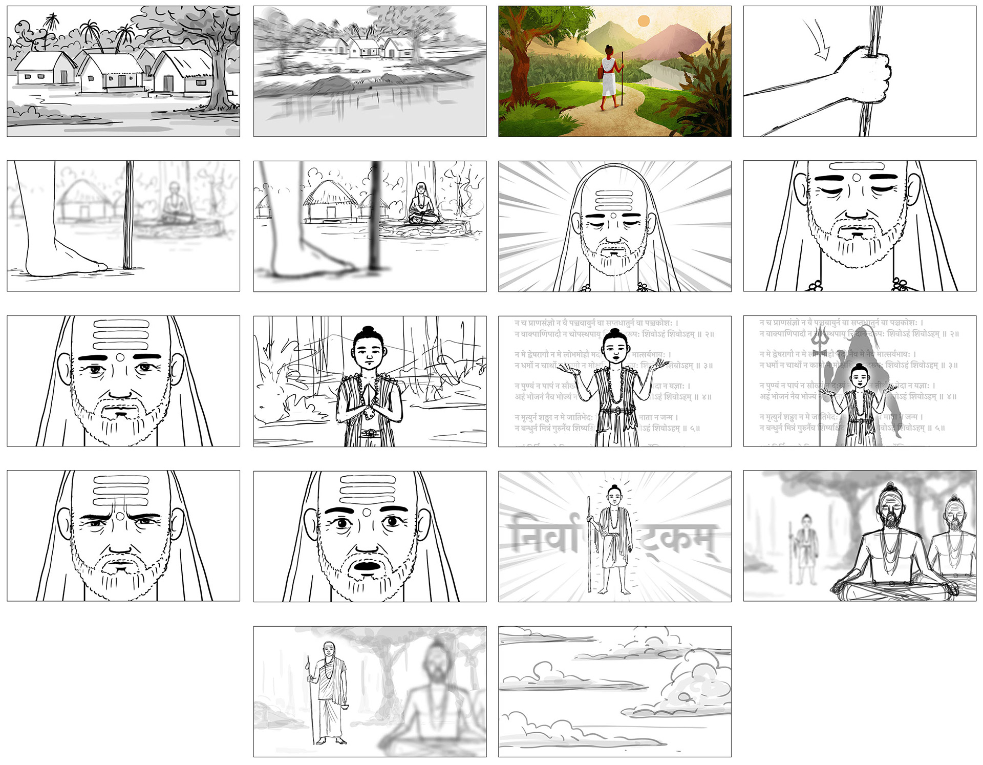 This is a short introductory animation video of Adi Shankara. This short animation will be the starting part of a live-action documentary about him. The style that was required was very artistic, raw, textured, and brush strokes. Also, there will be very less character animation and more camera movements to convey the story. The project also brought its set of technical challenges but in the end, we are really excited at how this turned out.