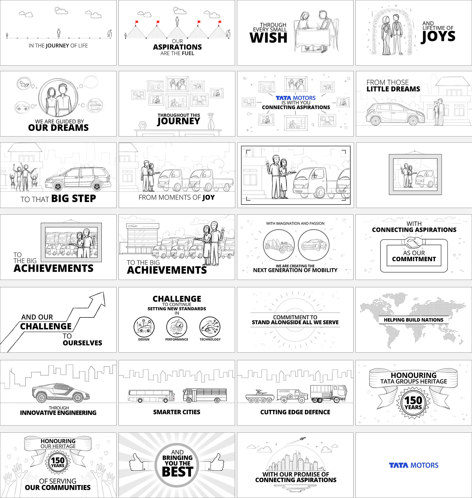 The slogan 'Connecting Aspirations' encapsulates the brand's essence as an integrated network of mobility solutions that are intelligent, intuitive, welcoming, and expressive. After a thorough evaluation of the recommendations presented to the Tata Motors Executive Committee, the brand promise 'Connecting Aspirations' was meticulously chosen.